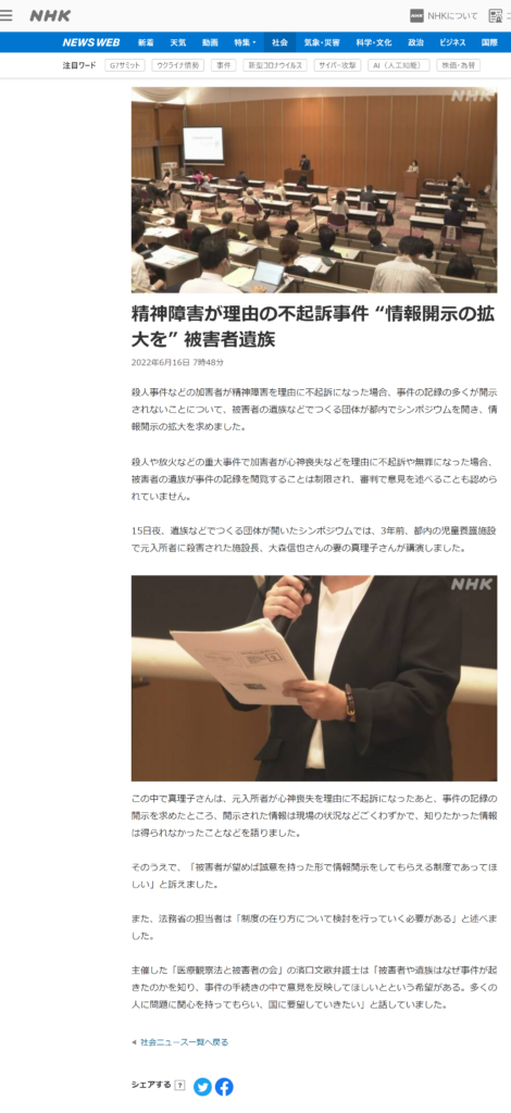 医療観察事件における被害者の関与と情報アクセスを考えるシンポジウム~