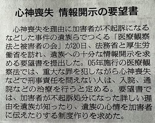 「医療観察事件被害者等の権利利益の拡充に関する要望書」を提出