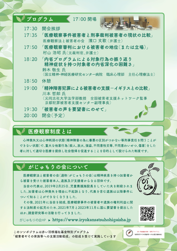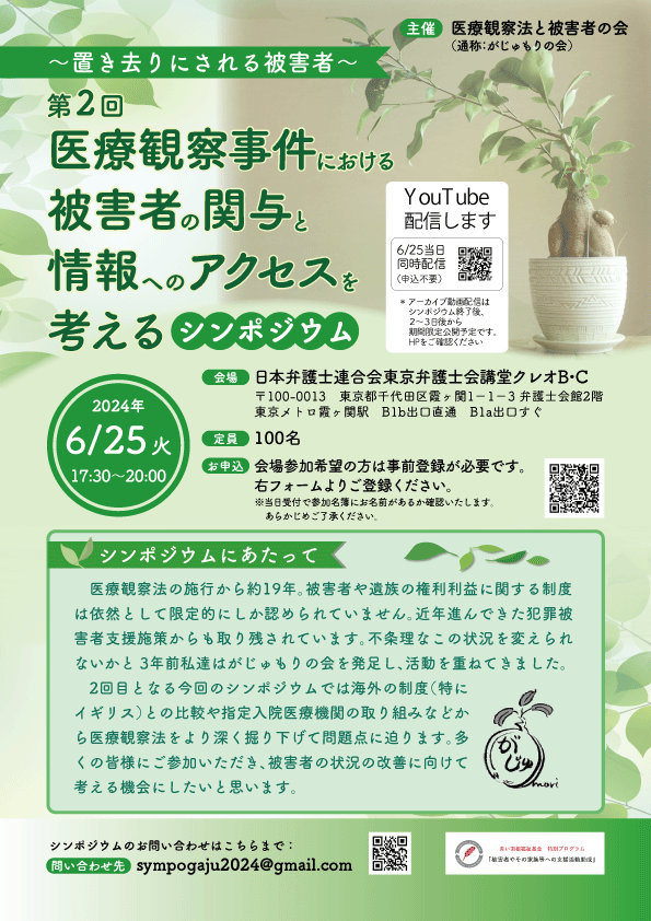 テーマ「第2回医療観察事件における被害者の関与と情報へのアクセスを考えるシンポジウム」